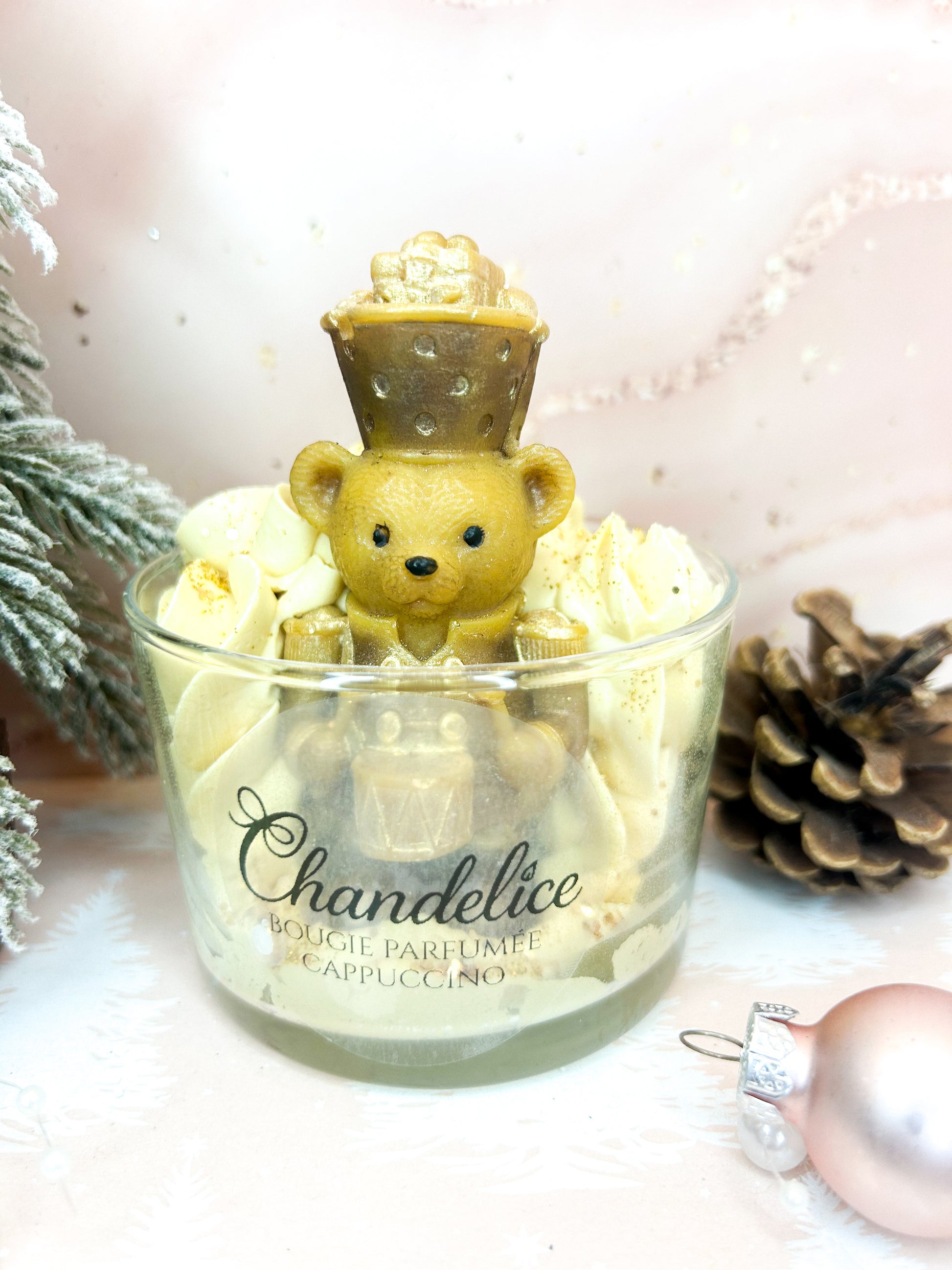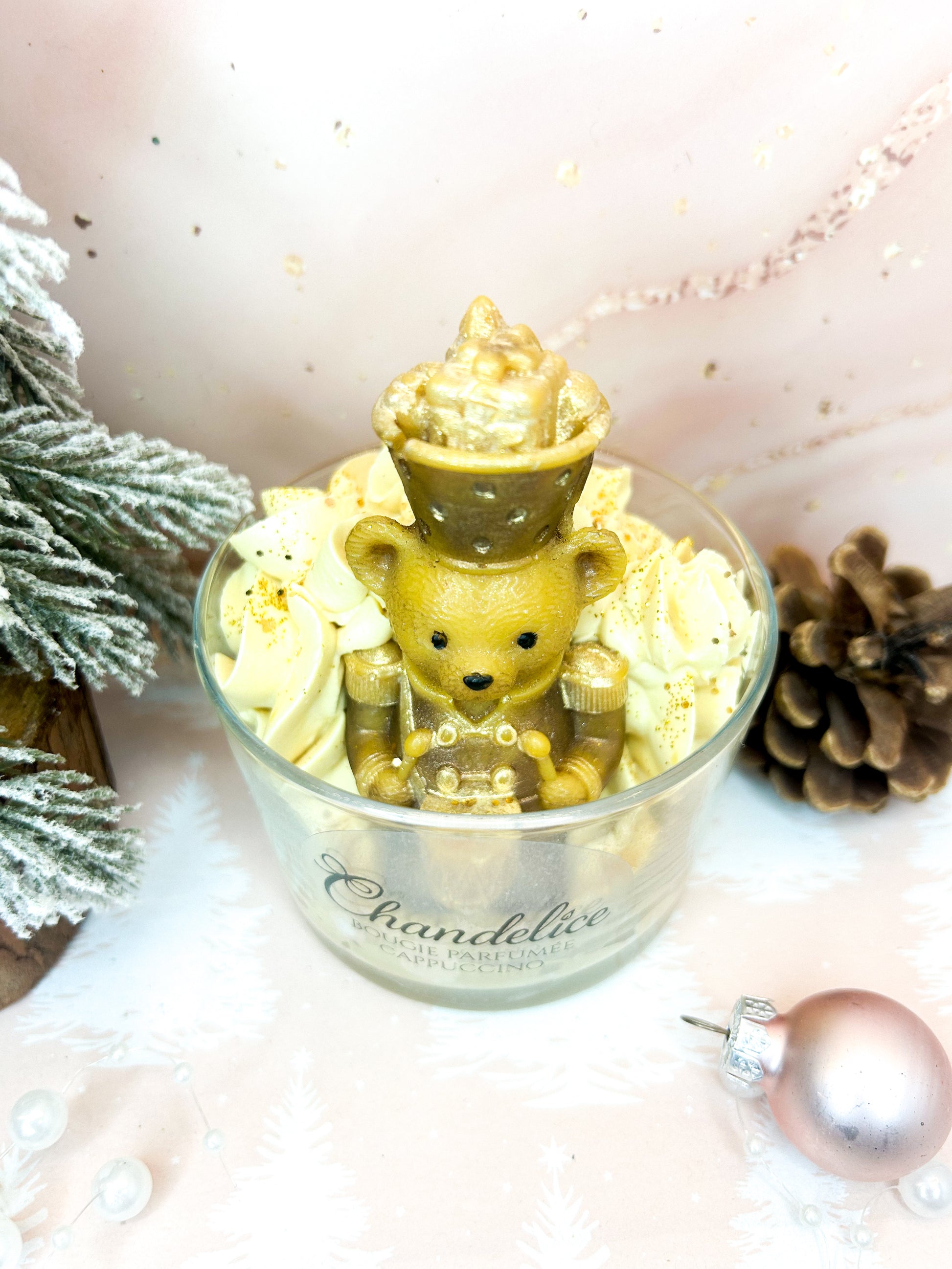 Une création irrésistiblement gourmande qui marie la douceur d’un cappuccino crémeux à l’élégance festive de ton adorable ours doré. Sa chantilly de cire parfumée, ses touches scintillantes et sa figurine détaillée en font une bougie aussi décorative qu’envoûtante.